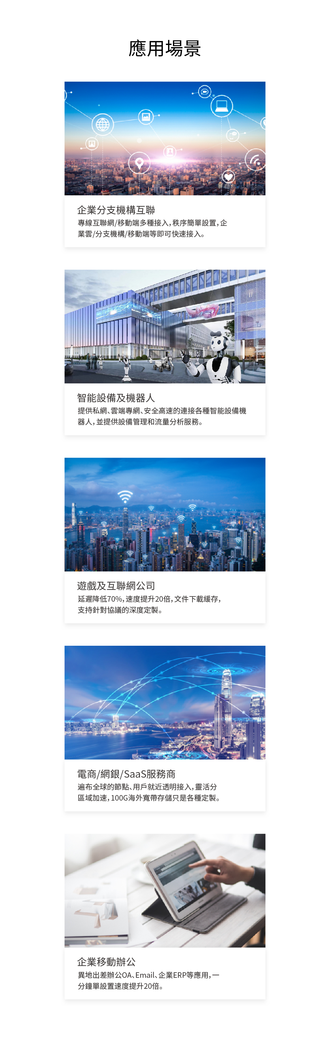 智能設(shè)備及機器人 提供私網(wǎng)、雲(yún)端專網(wǎng)、安全高速的連接各種智能設(shè)備機器人,並提供設(shè)備管理和流量分析服務(wù)。