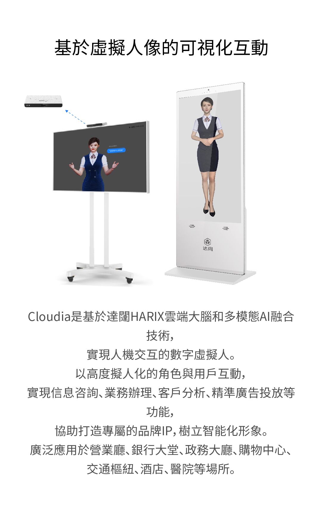 Cloudia是基於達闥HARIX雲(yún)端大腦和多模態(tài)AI融合技術,