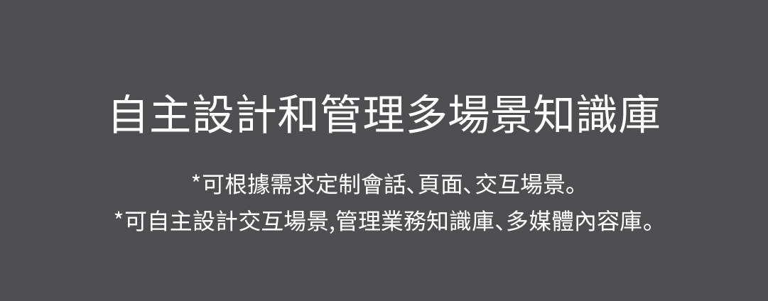 *可自主設計交互場景,管理業(yè)務知識庫、多媒體內(nèi)容庫。