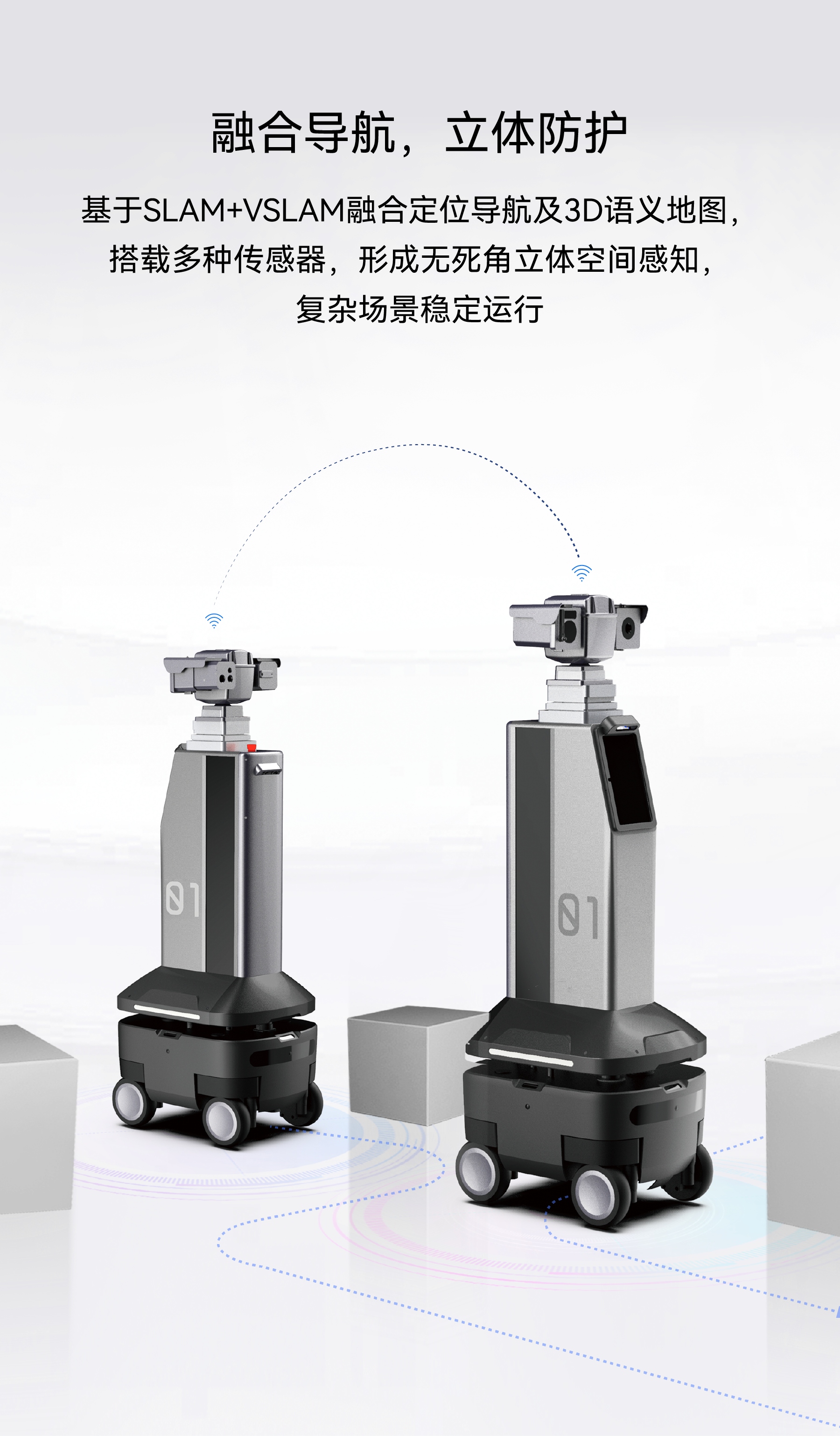 基于SLAM+VSLAM融合定位導(dǎo)航及3D語義地圖,搭載多種傳感器,形成無死角立體空間感知,復(fù)雜場景穩(wěn)定運(yùn)行